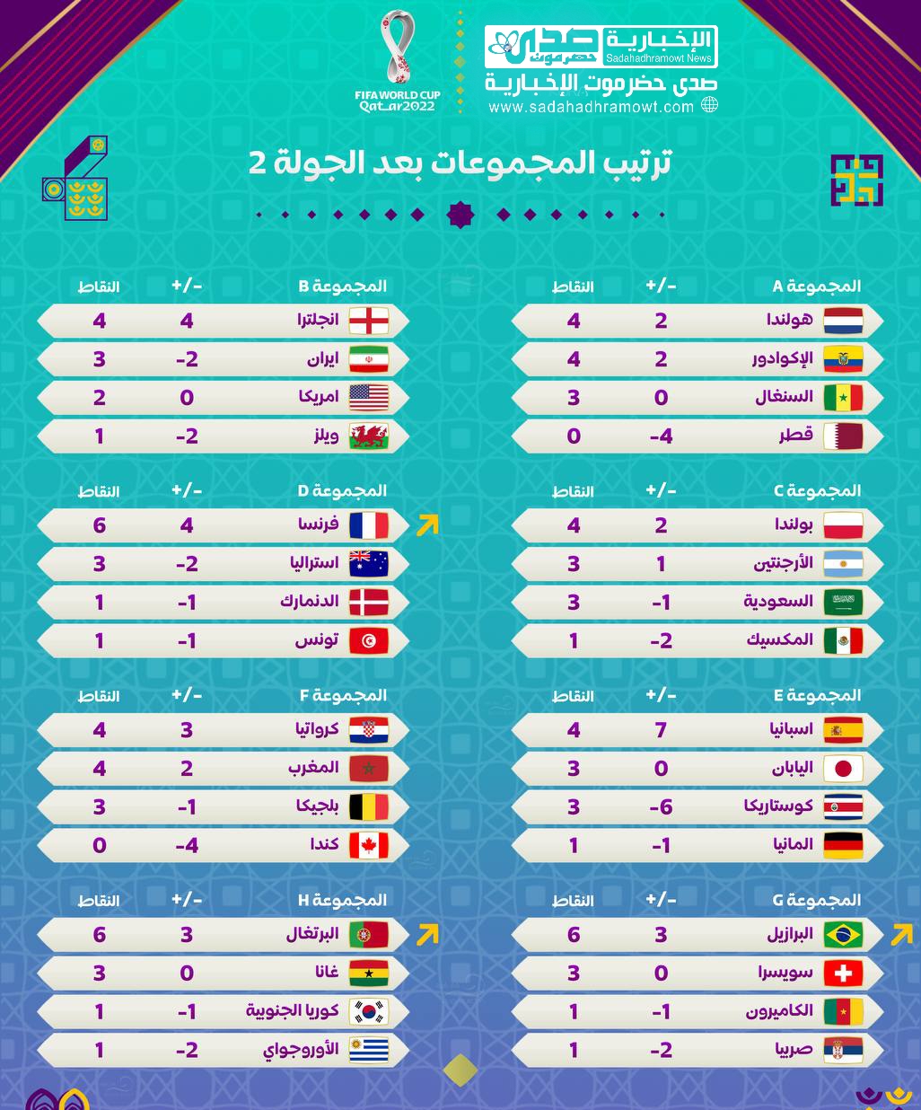 Ranking of all teams after the second round of the FIFA World Cup Qatar 2022